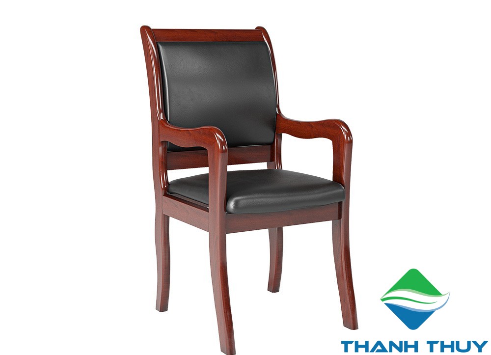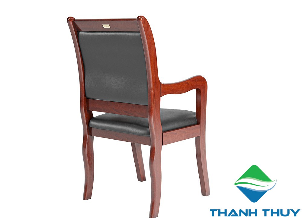 Ghế hội trường gỗ tự nhiên, có tay, được sơn phủ PU, đệm tựa bọc vải hoặc PVC.