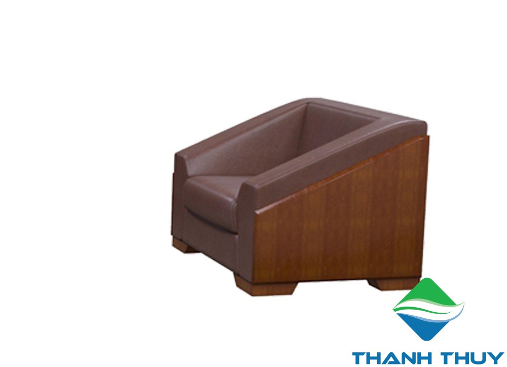 Bộ ghế sofa văn phòng cao cấp, đệm tựa bọc da thật phần tiếp xúc người sử dụng hoặc PVC. Đế chân và cạnh tay sử dụng ốp gỗ sơn có vát cạnh.