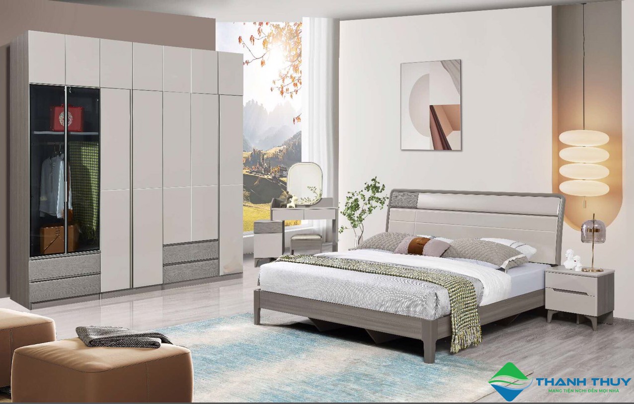 BỘ GIƯỜNG TỦ HIỆN ĐẠI NHẬP KHẨU TP - 1956- Bộ giường tủ hiện đại nhập khẩu TP - 1956 màu sắc sang trọng, nhập khẩu cao cấp với vẻ đẹp thẩm mỹ cao. Thiết kế hiện đại thanh lịch, mang đến cảm giác nhẹ nhàng cho người nhìn. Màu trắng kem dễ dàng hợp với mọi nội thất mang lại sự hài hòa trong căn phòng, tạo giấc ngũ sâu và bình yên