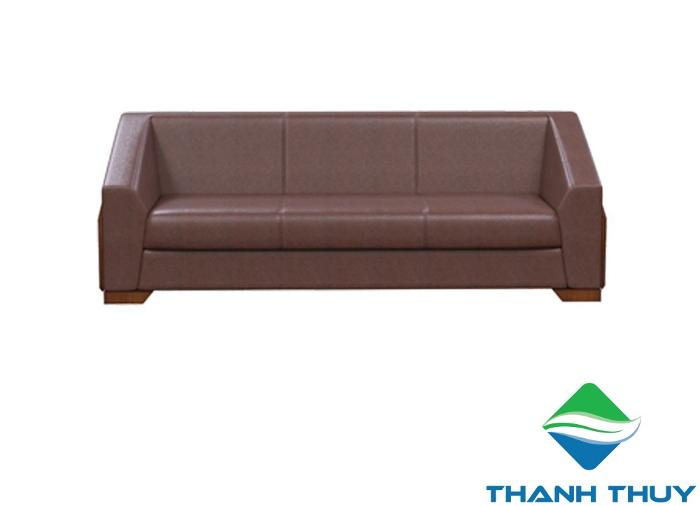 Bộ ghế sofa văn phòng cao cấp, đệm tựa bọc da thật phần tiếp xúc người sử dụng hoặc PVC. Đế chân và cạnh tay sử dụng ốp gỗ sơn có vát cạnh.